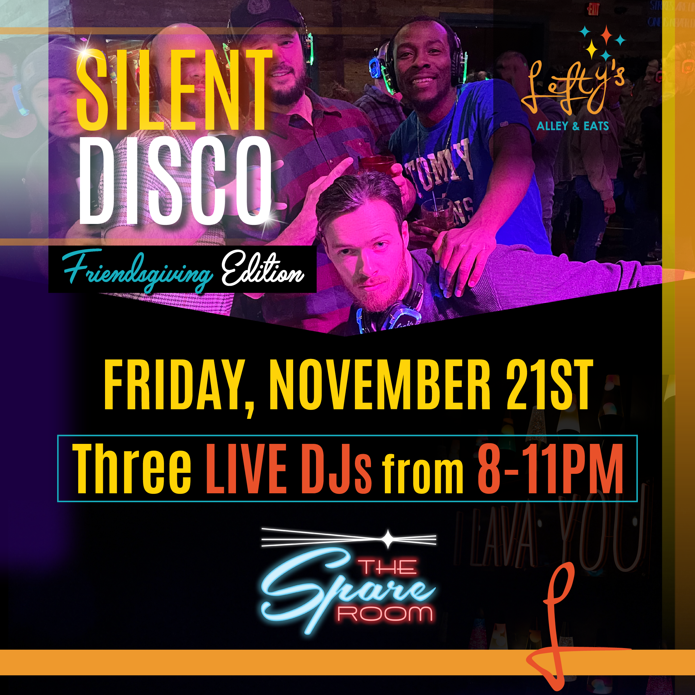 Celebrate the season of friendship with the ultimate Friendsgiving party — Lefty’s Silent Disco! Grab your crew, throw on those glowing headphones, and tune into three live DJ channels spinning everything from today’s hits to nostalgic throwbacks.