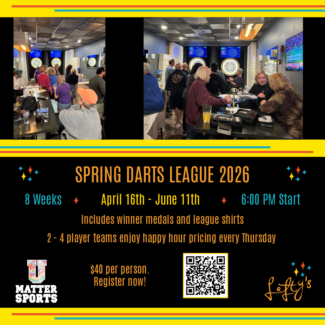UMatter Darts League + Add to Google Calendar + iCal / Outlook export 00 days 00 hours 00 minutes 00 seconds Date Apr 16 2026 Time 6:00 am - 9:00 pm Location Lefty's Alley & Eats 36450 Plaza Blvd, Category Events Share this event